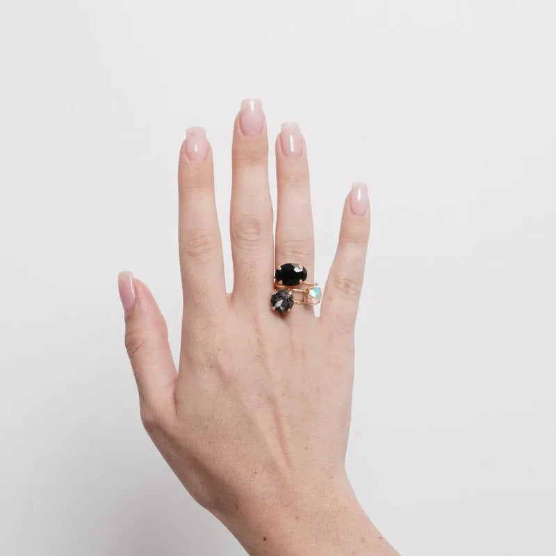 Anello in Metallo cristalli neri e viola