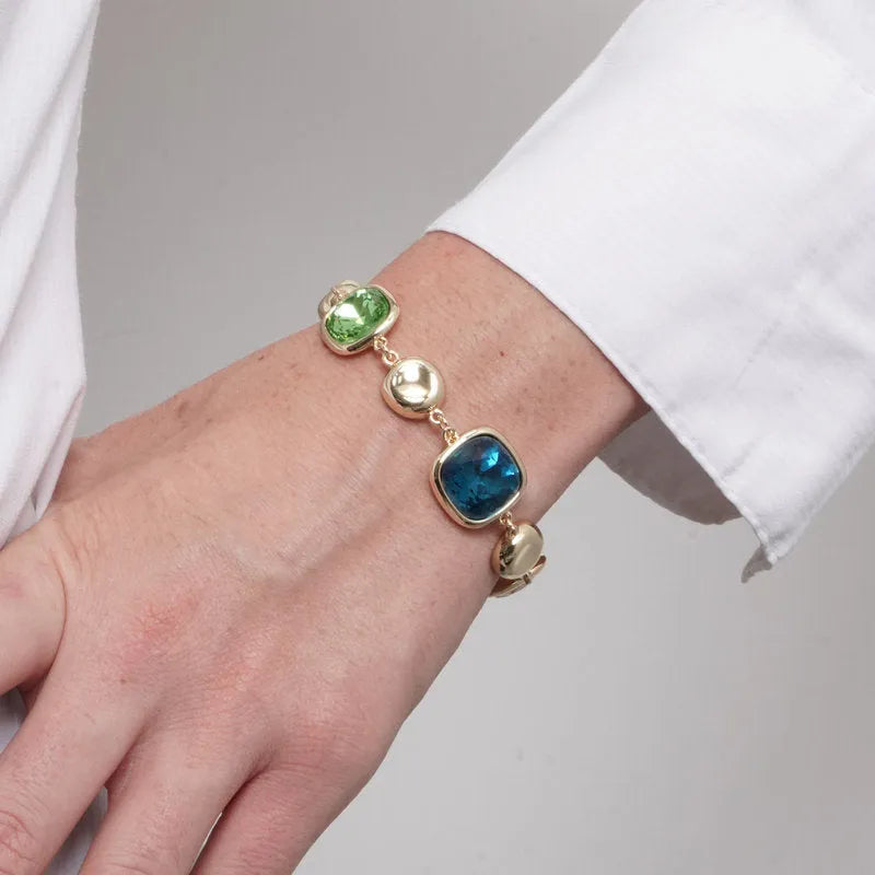 Bracciale in Metallo quadrato con cristalli colorati e sfere