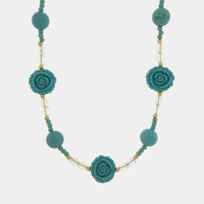 Collana in Metallo fiori e sfere turchesi