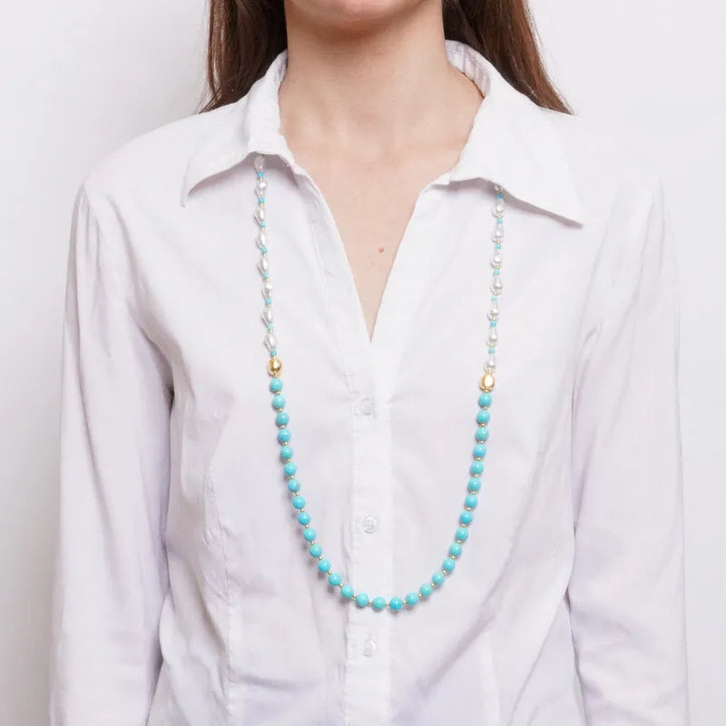 Collana in Metallo lunga con sfere azzurre