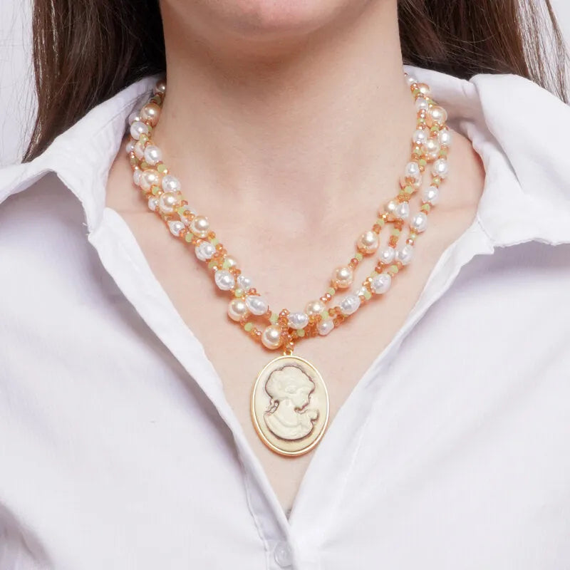 Collana in Metallo multifilo con perle e cammeo