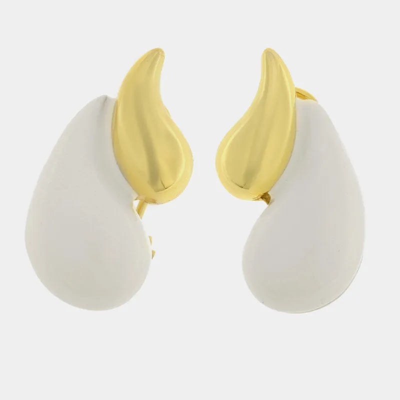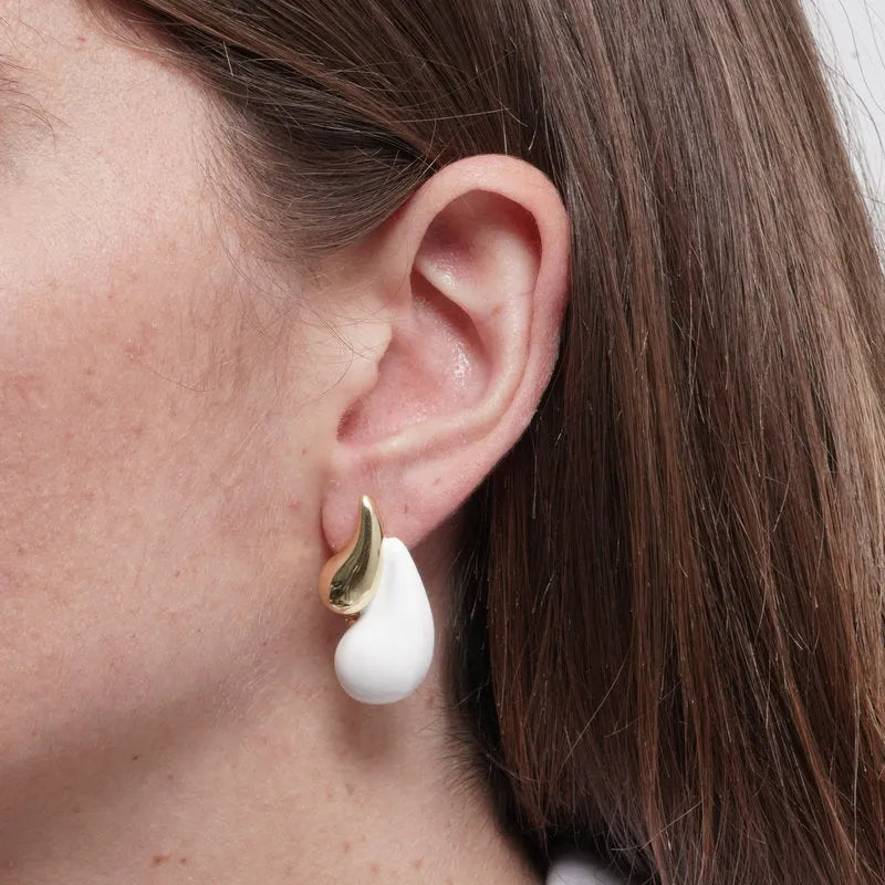 Orecchini in Metallo goccia liscia e smaltata bianca