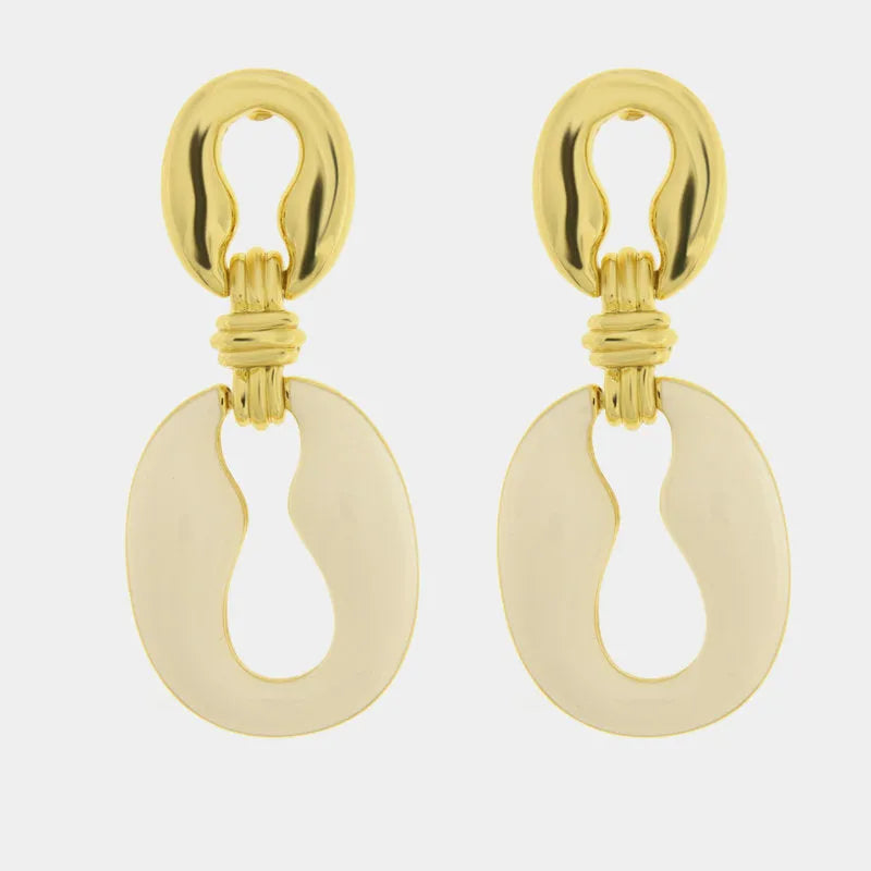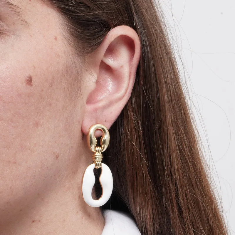 Orecchini in Metallo ovale smaltato bianco