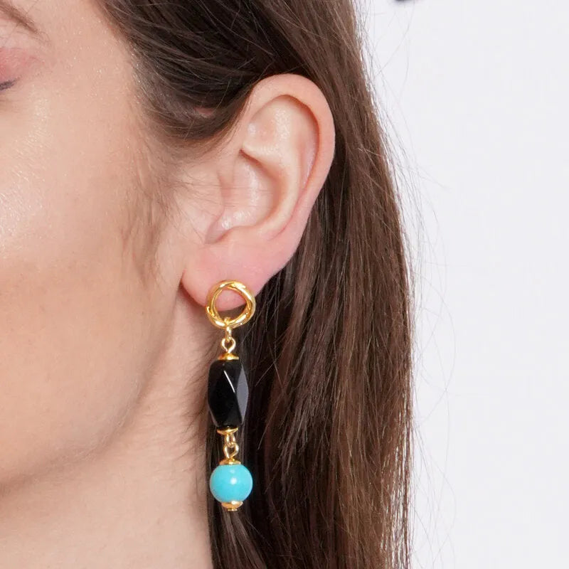 Orecchini in Metallo pietra turchese e nera
