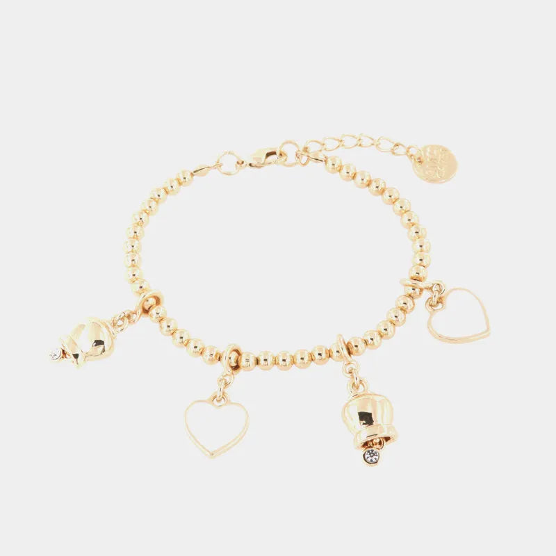 Bracciale in Metallo multi ciondoli a forma di campanella e cuori in smalto bianco