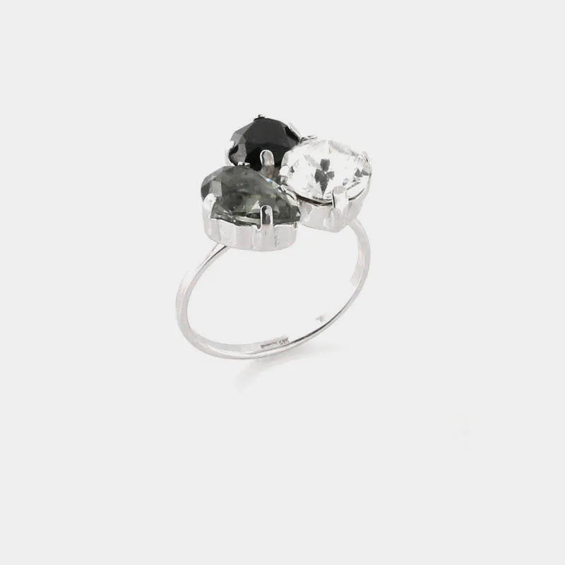 Anello in Argento 925 con tris di cristalli colorati