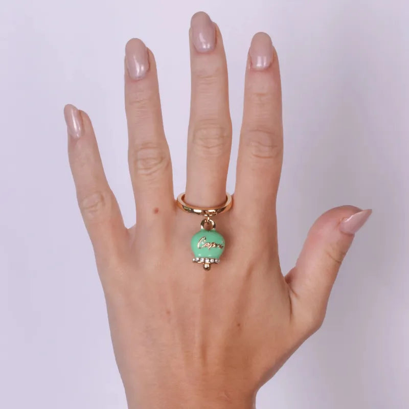 Anello in Metallo con campanella verde scritta capri