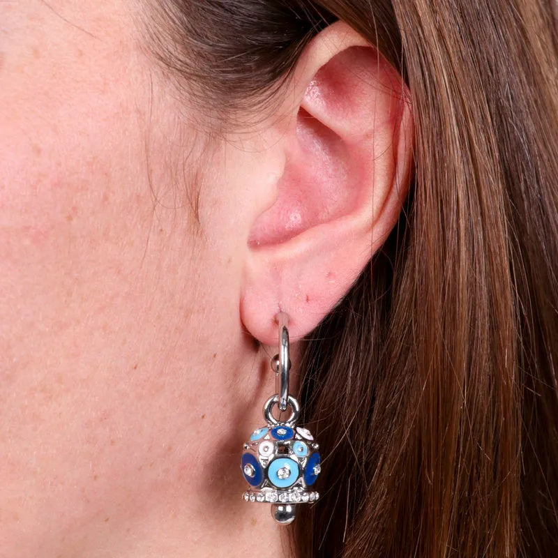 Orecchini in Metallo con campanella a pois blu e azzurro e zirconi