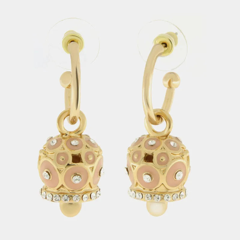 Orecchini in Metallo con campanella a pois rosa e zirconi