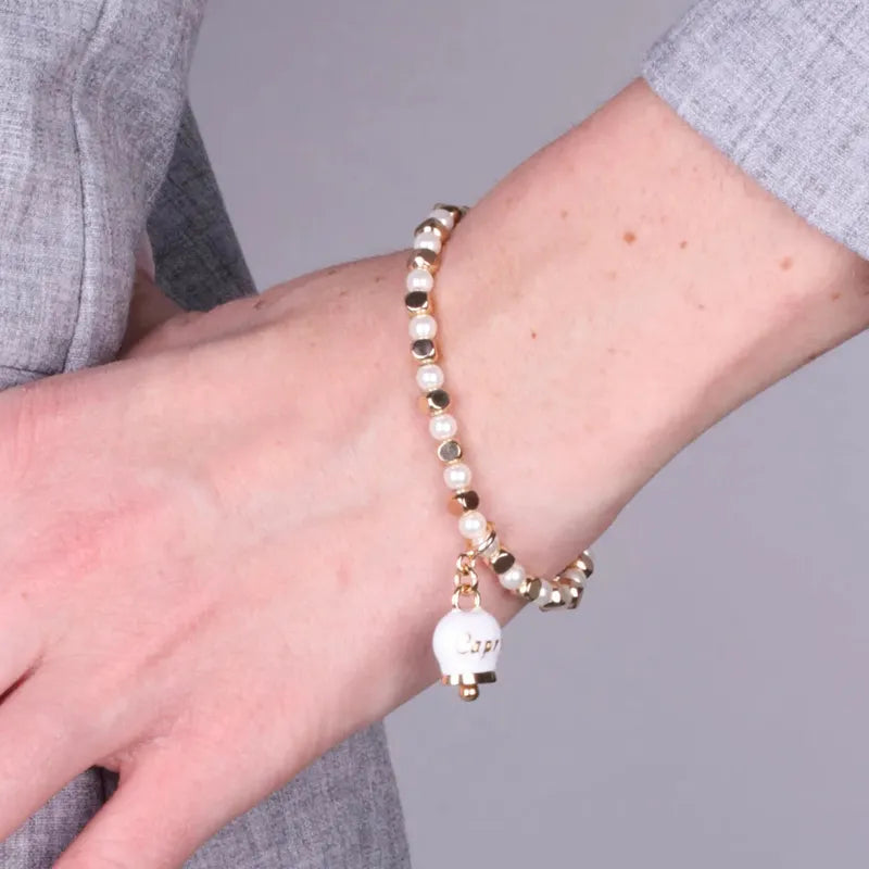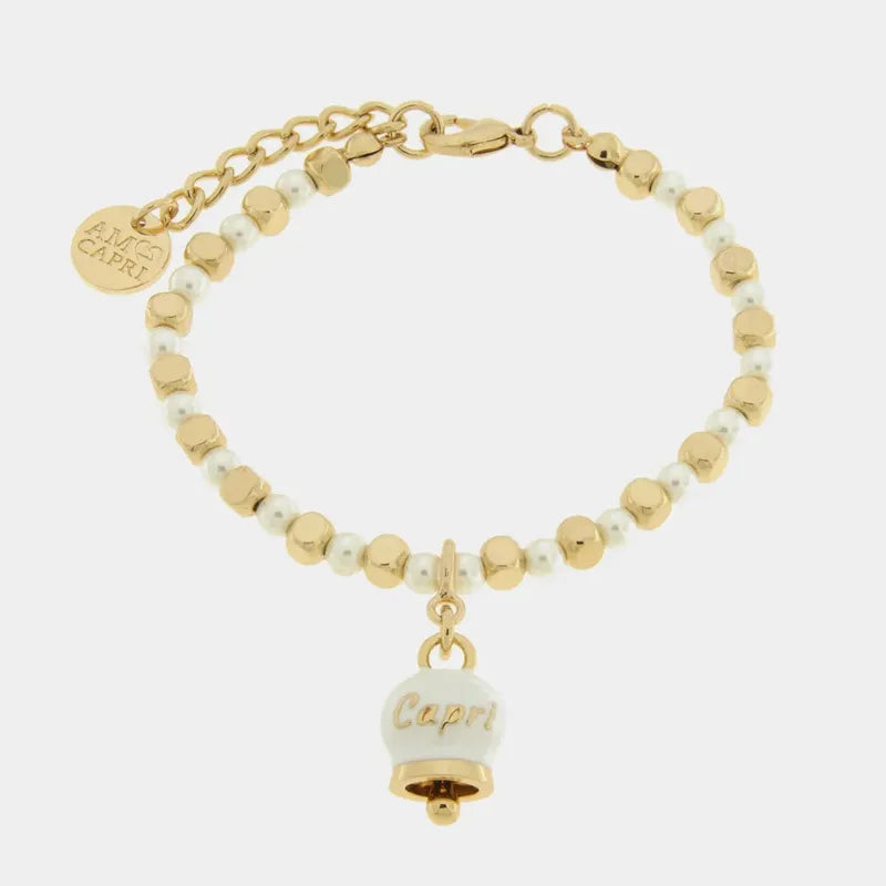 Bracciale in Metallo con sfere e campanella Capri bianca