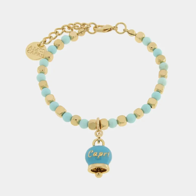 Bracciale in Metallo con sfere e campanella Capri turchese