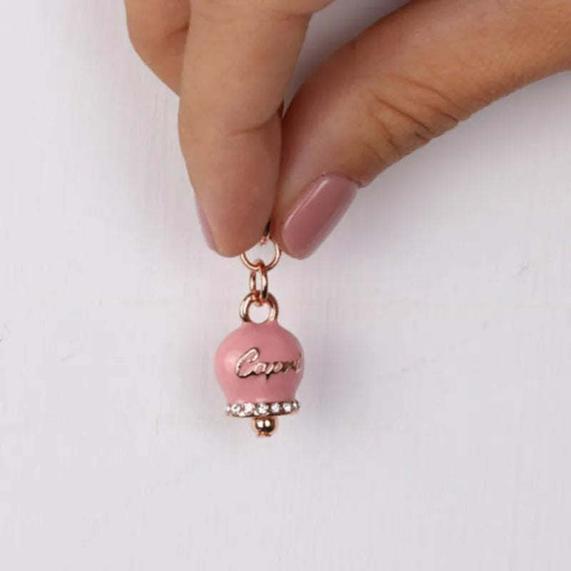 Ciondolo in Metallo campanella smalto rosa con cristalli bianchi