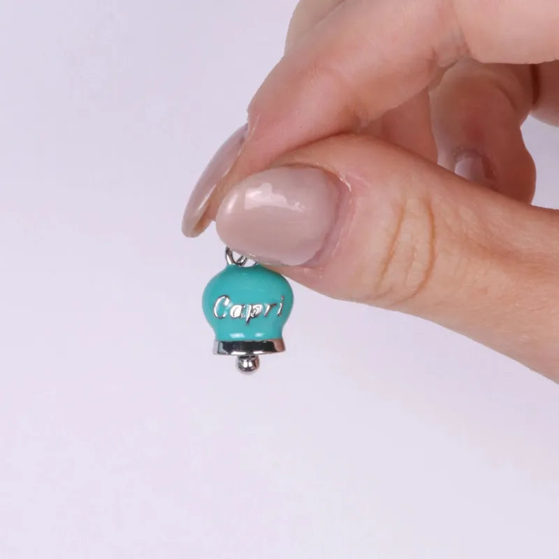 Ciondolo in Metallo con campanella verde acqua scritta capri