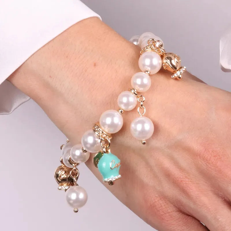 Bracciale in Metallo Bracciale in Metallo con perle e campanelle portafortuna in smalto verde con scritta Capri