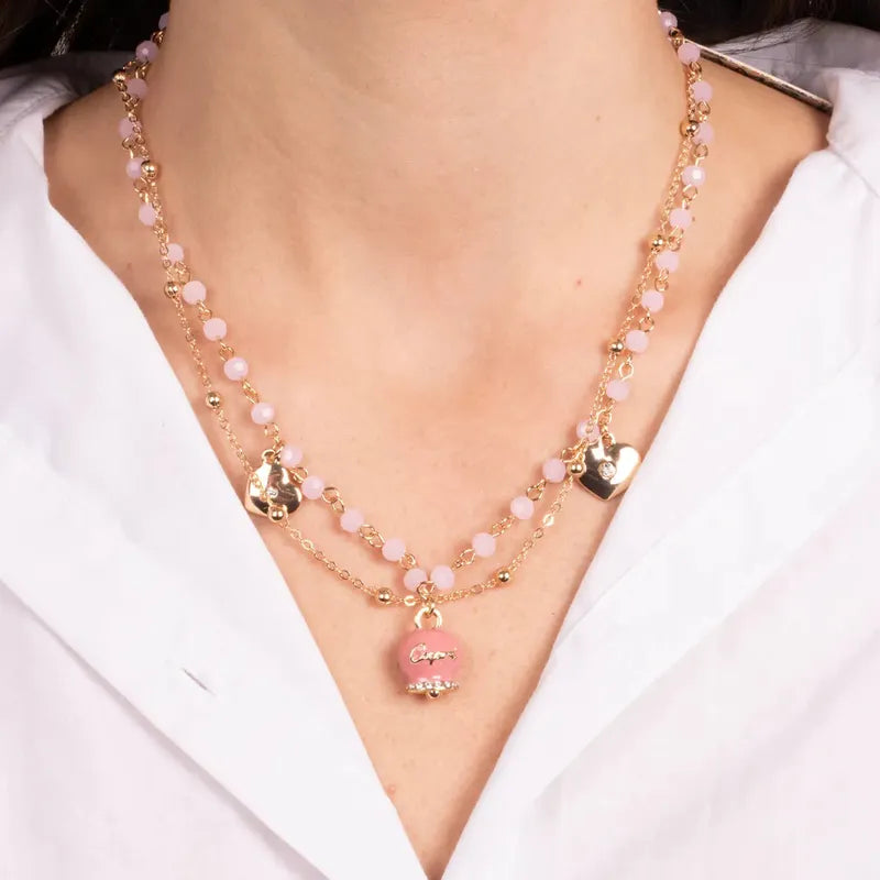 Collana in Metallo con campana smaltata rosa e cuoricini pendenti