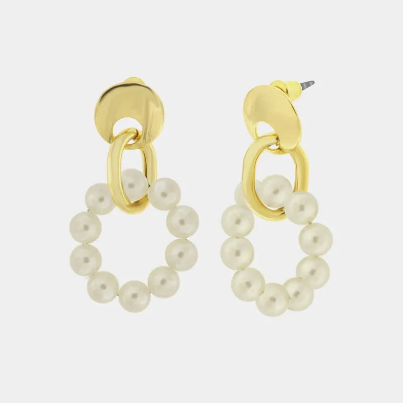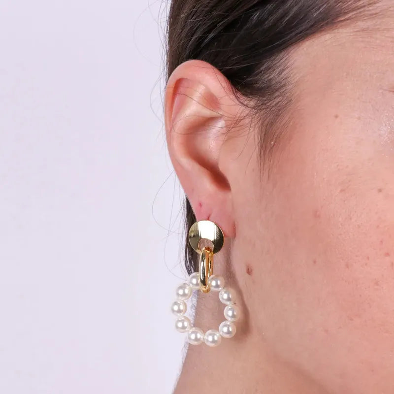 Orecchini in Metallo al lobo catena oro e perle pendenti
