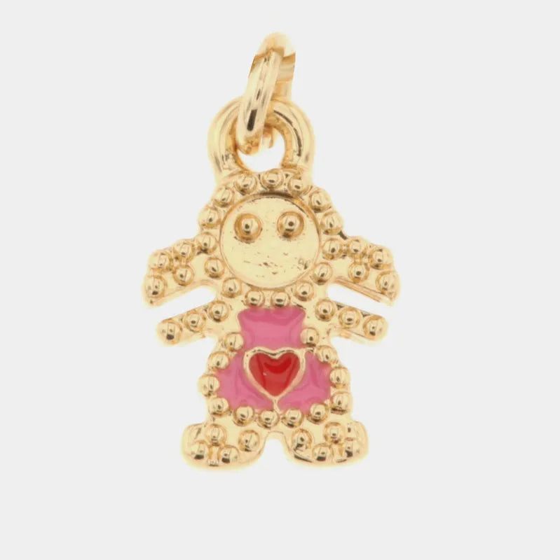 Ciondolo in Metallo bimba con cuore impreziosito da smalti colorati