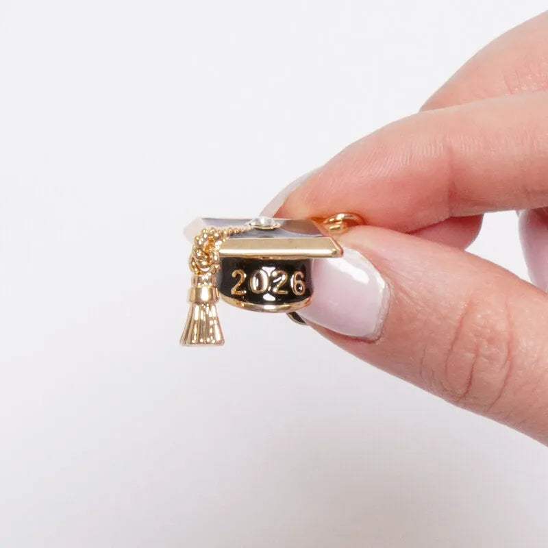 Ciondolo in Metallo Charm tocco laureato 2026 in metallo placcato oro con smalto nero