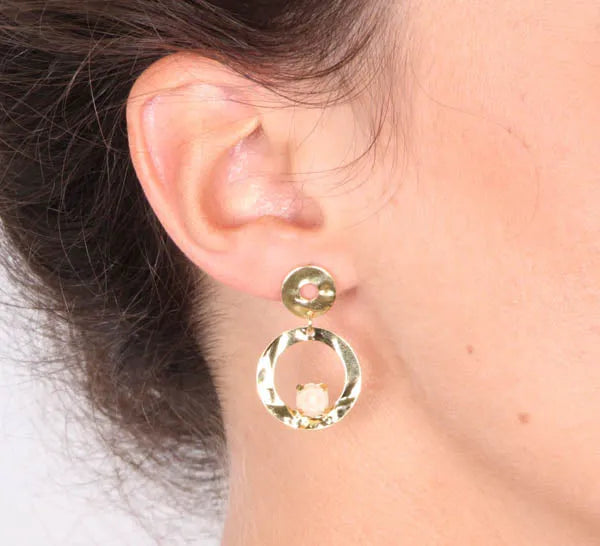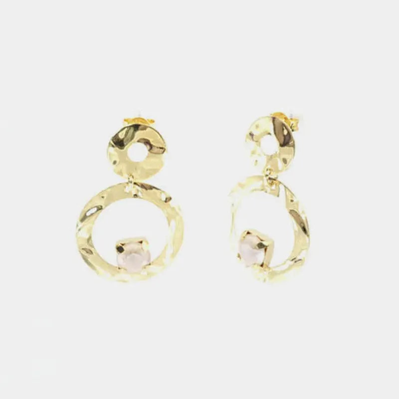 Orecchini in Argento 925  a cerchio con cristalli colorati, su piastra martellata