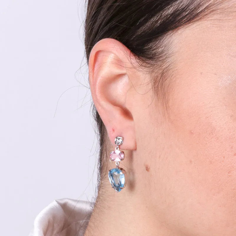 Orecchini in Argento 925 con cristalli colorati pendenti