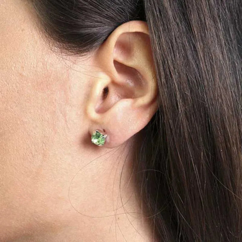 Orecchini in Argento 925 punto luce a lobo con cristallo verde