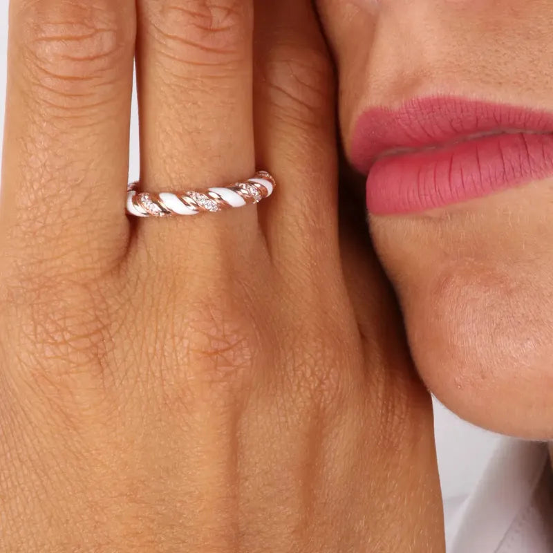 Anello in Argento 925 con intrecci impreziositi da zirconi bianchi e smalti colorati