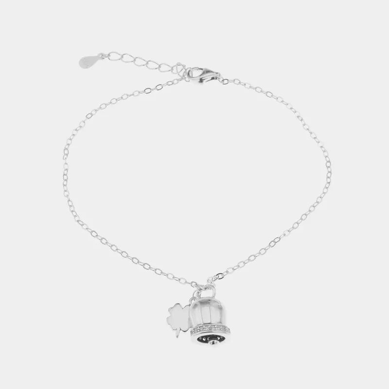Bracciale in Argento 925 con campanella portafortuna e quadrifoglio