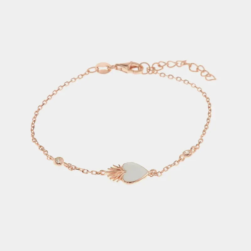 Bracciale in Argento 925 maglia in catena con dettagli in cristalli bianchi e ex voto con smalto bianco