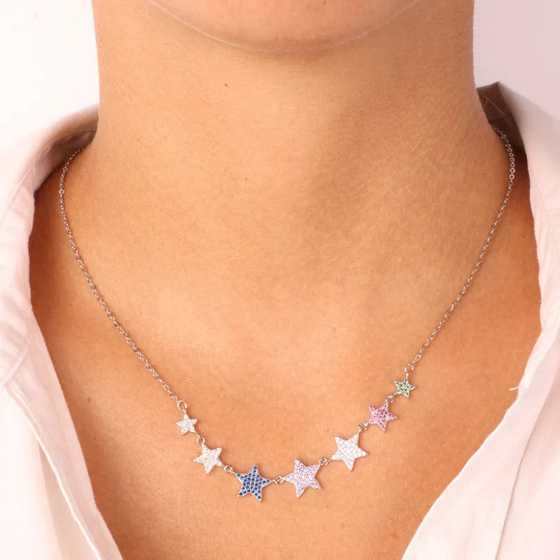 Collana in Argento 925 a forma di stelle con zirconi colori