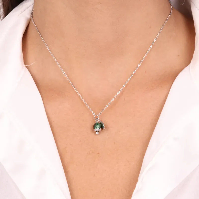 Collana in Argento 925 campanella portafortuna con quadrifoglio e cubic zirconi verdi
