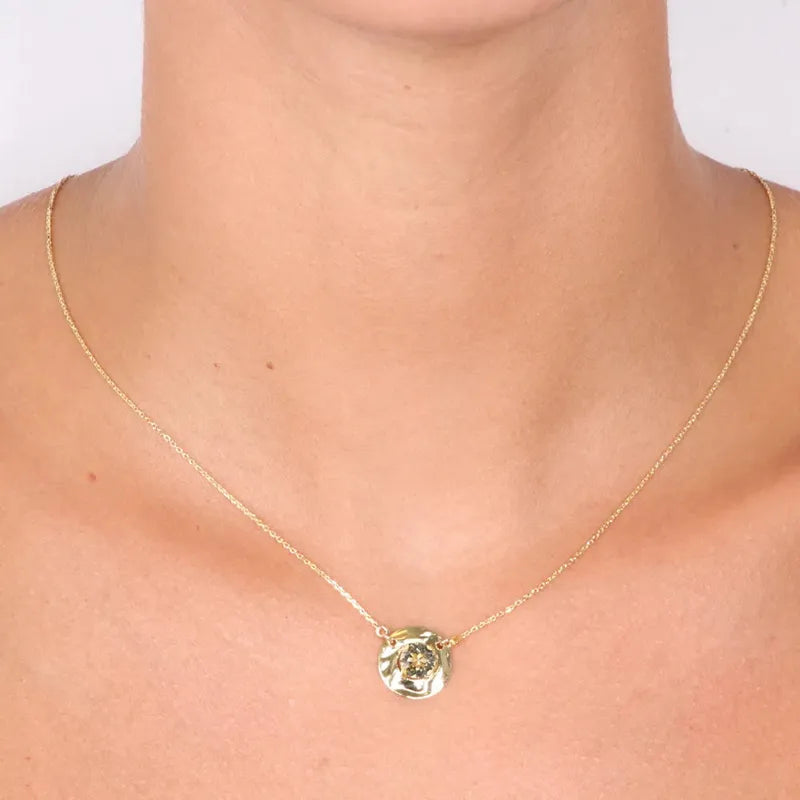 Collana in Argento 925 pendente con cristalli colorati, su piastra martellata