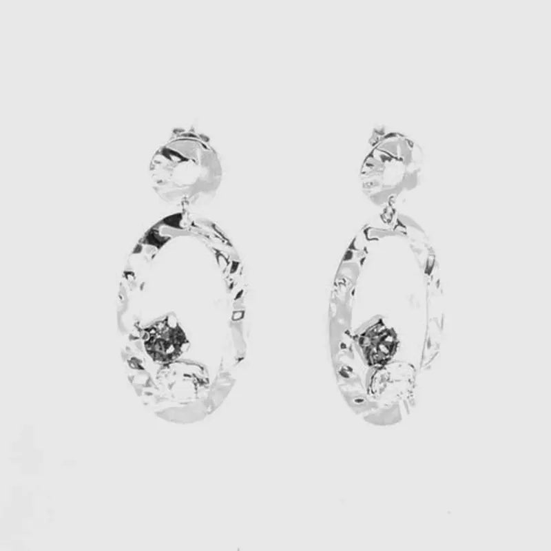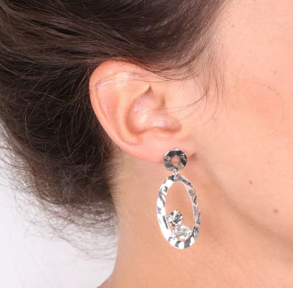 Orecchini in Argento 925  a cerchio con cristalli colorati, su piastra martellata