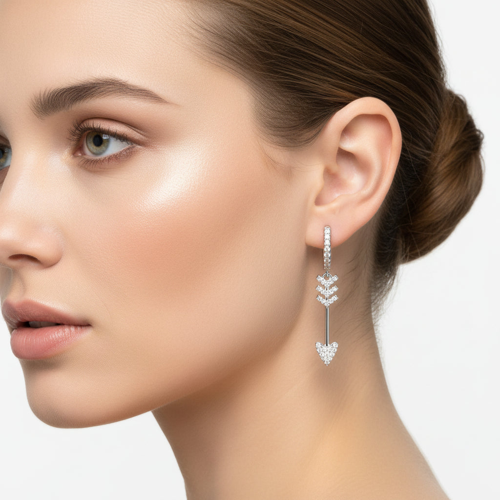Orecchini in Argento 925 cerchietto con freccia a lobo e pendente impreiziosito da zirconi colorati
