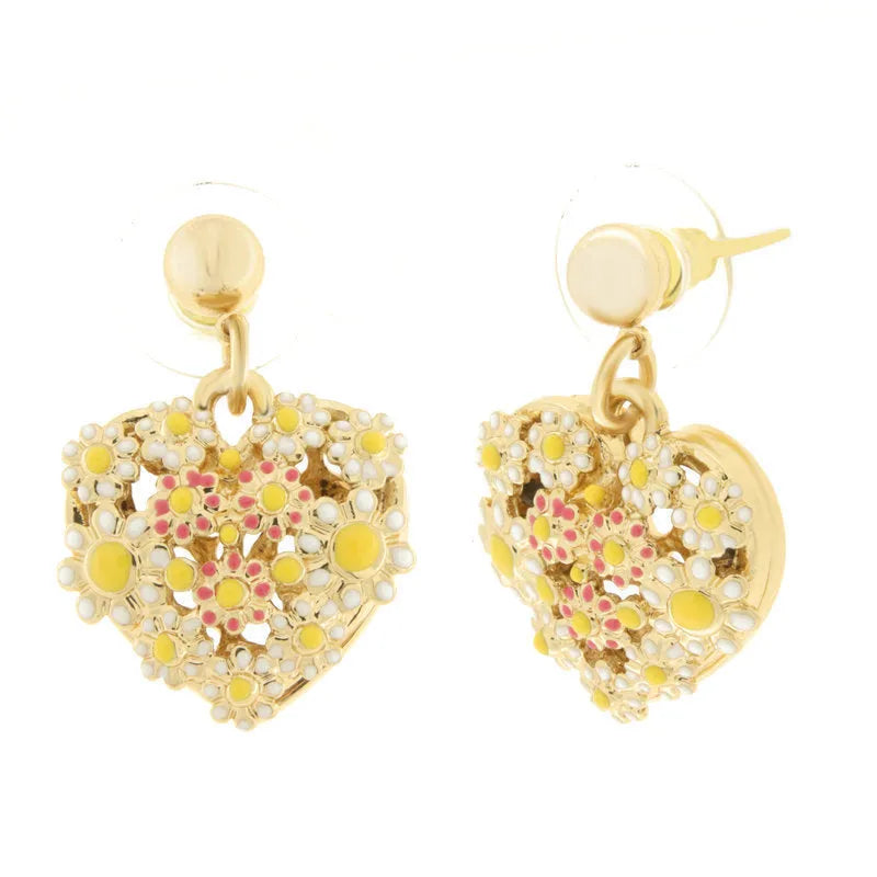 Orecchini in Metallo cuore impreziosito da fiori bianchi