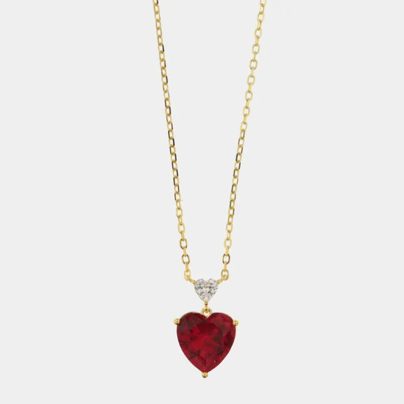 Collana in Argento 925 con cuori in zircone bianco e rosso rubino