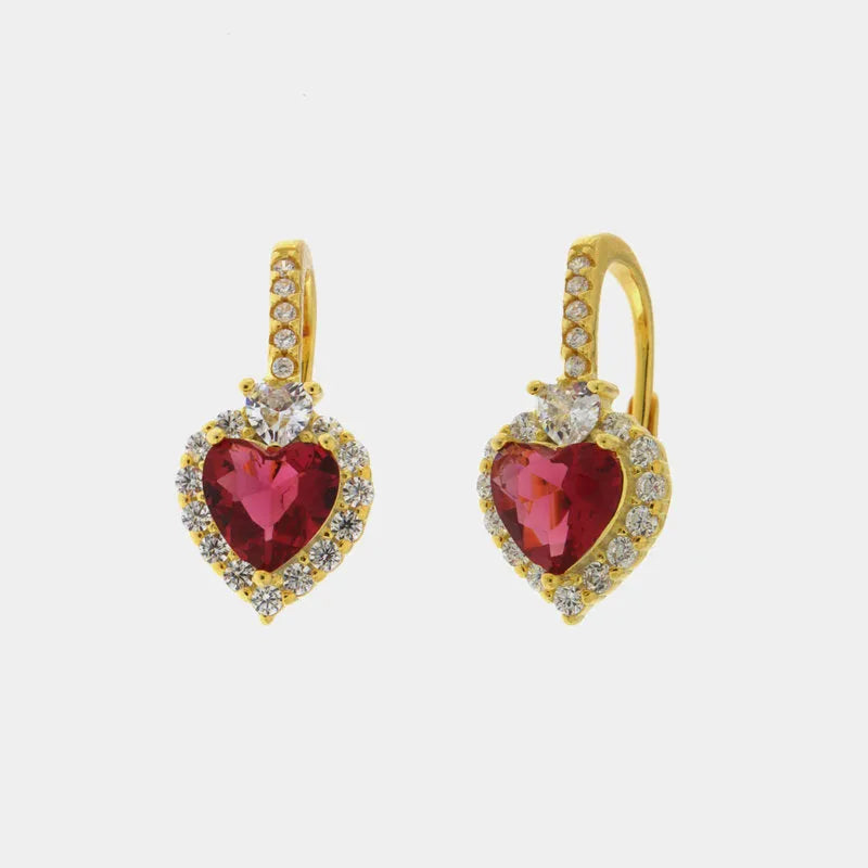 Orecchini in Argento 925 con punto luce a cuore rosso impreziosito da zirconi bianchi