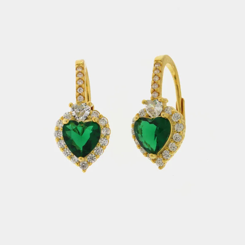 Orecchini in Argento 925 con punto luce a cuore verde impreziosito da zirconi bianchi