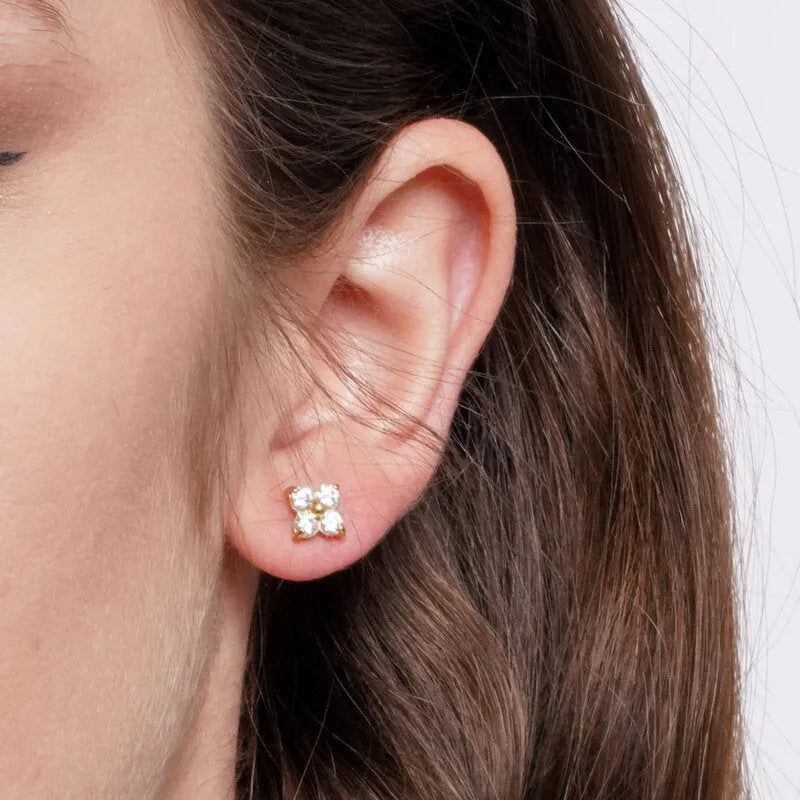 Orecchini in Acciaio fiore a lobo con punti luce