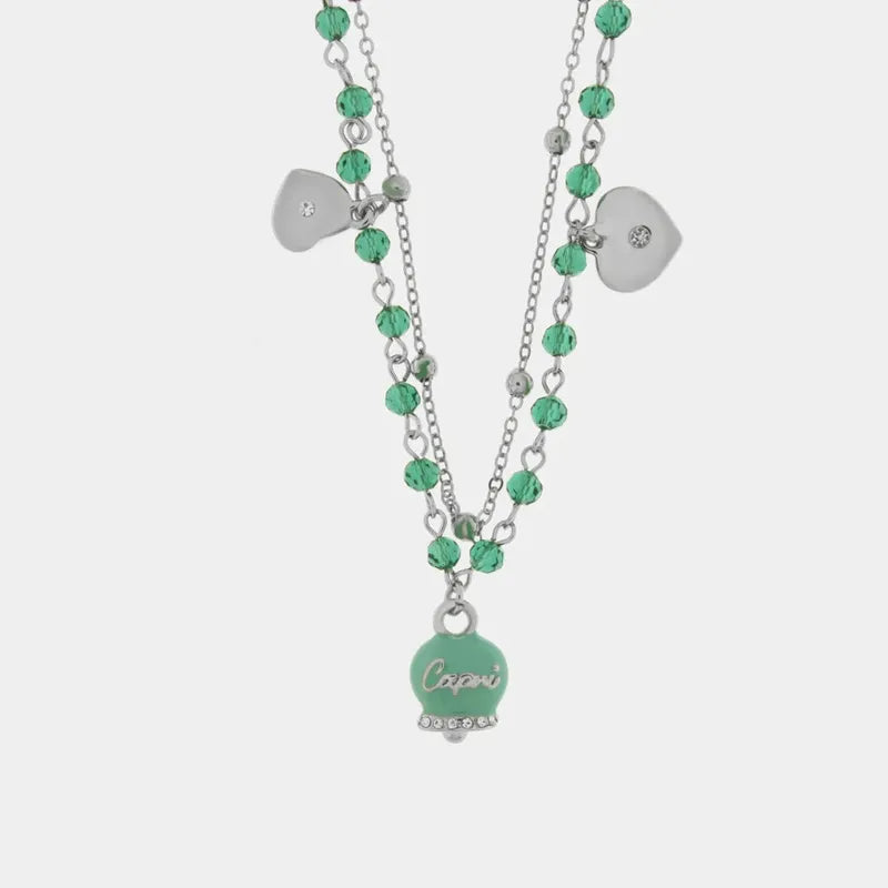 Collana in Metallo multifilo con campanella e pietre verde marino