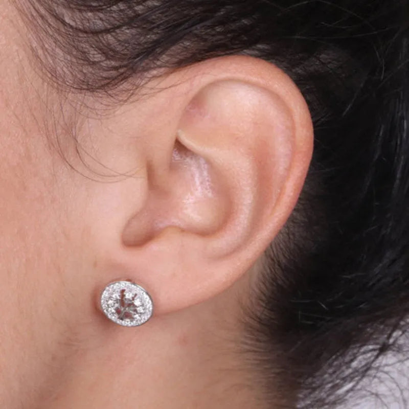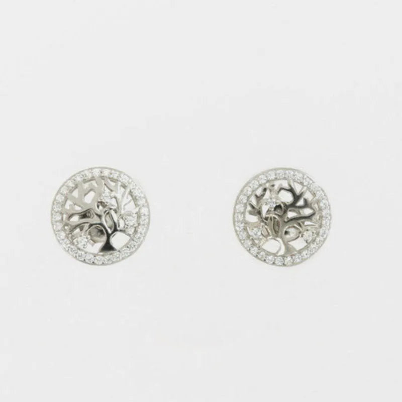 Orecchini in Argento 925 albero della vita a lobo, incorniciato da giro di zirconi bianchi