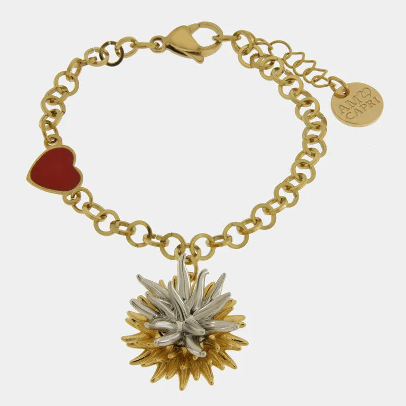 Bracciale in Metallo con riccio di mare placcato oro e argento e cuore