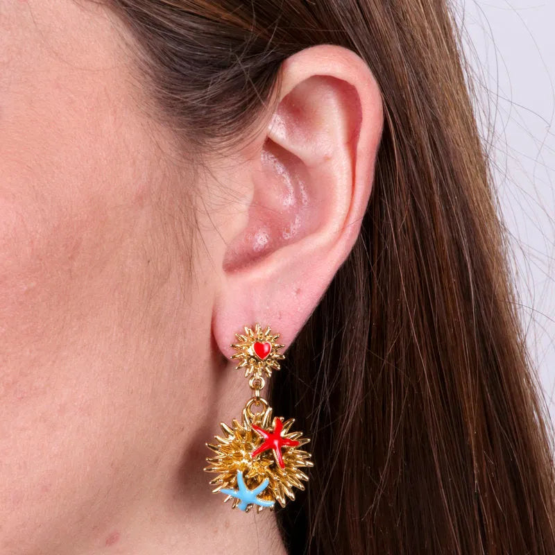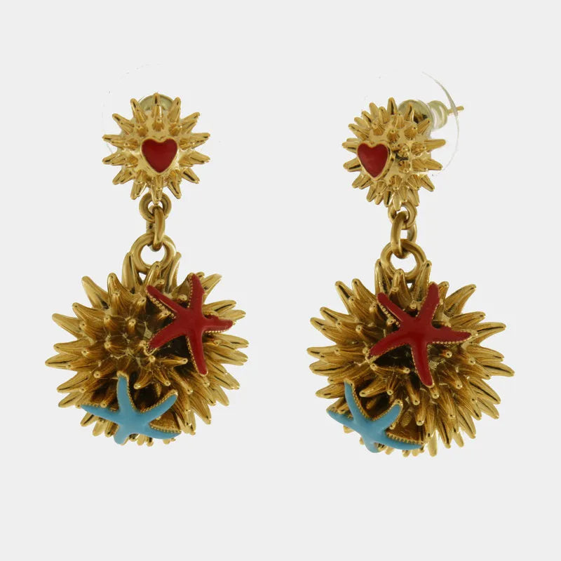 Orecchini in Metallo con cuore e riccio di mare e stelle marine