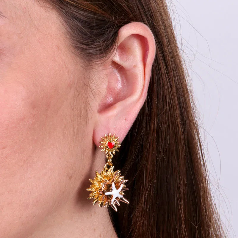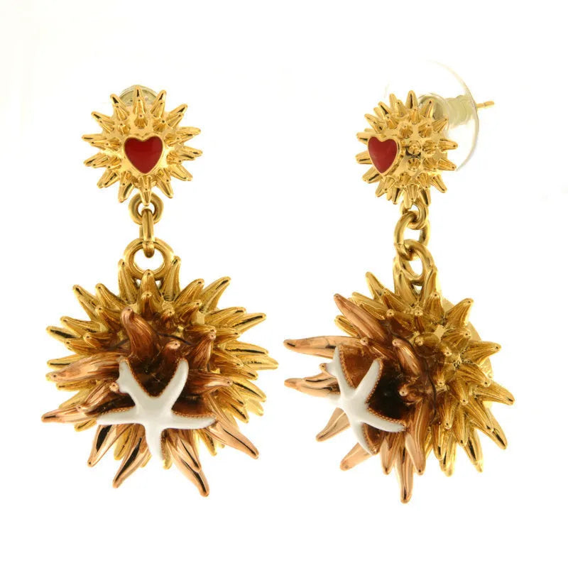 Orecchini in Metallo con cuore e riccio di mare placcato oro con stella marina bianca
