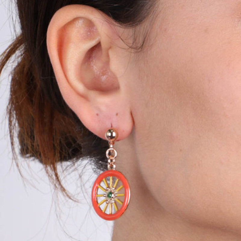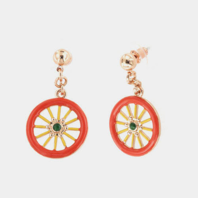 Orecchini in Metallo con ruote carretto siciliano pendenti, impreziosite da smalti colorati