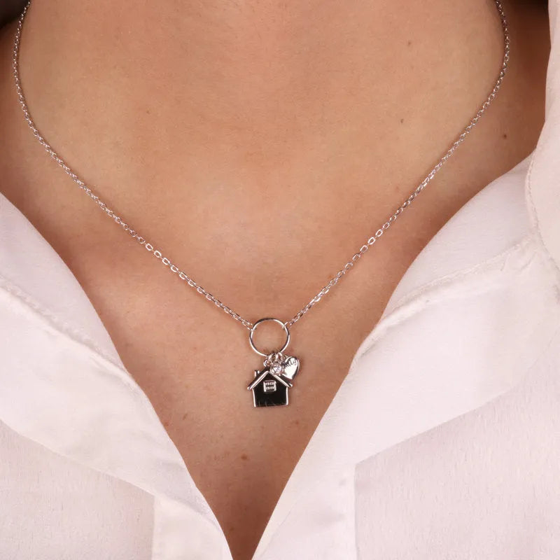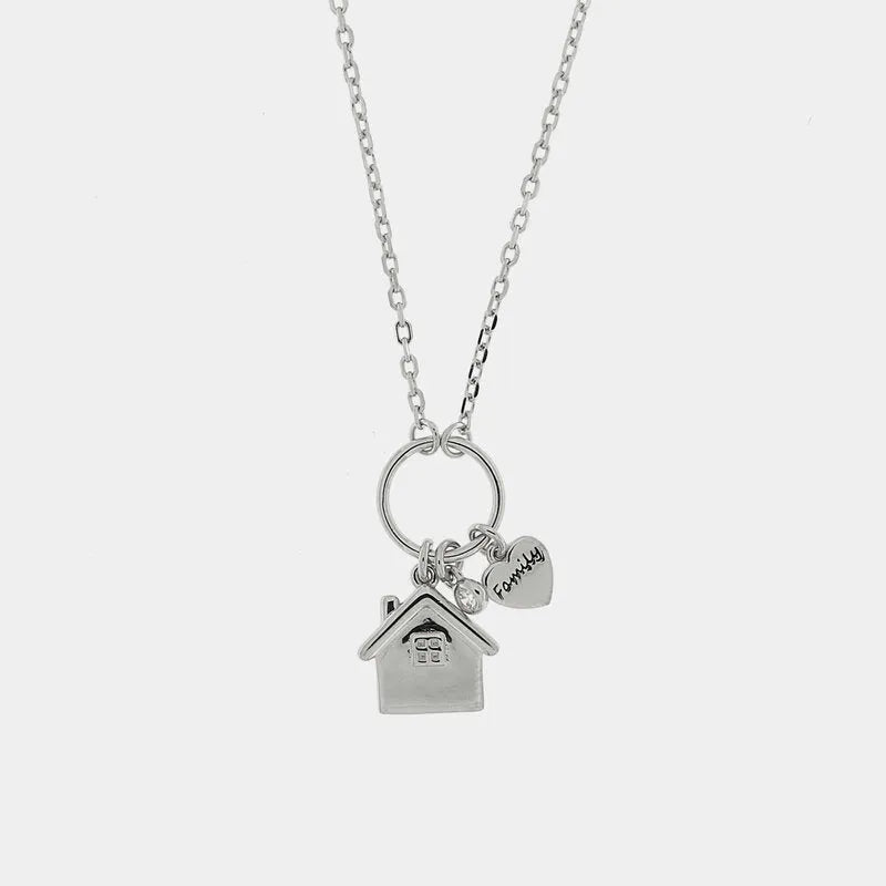 Collana in Argento 925 con pendente a forma di casa e scritta Family