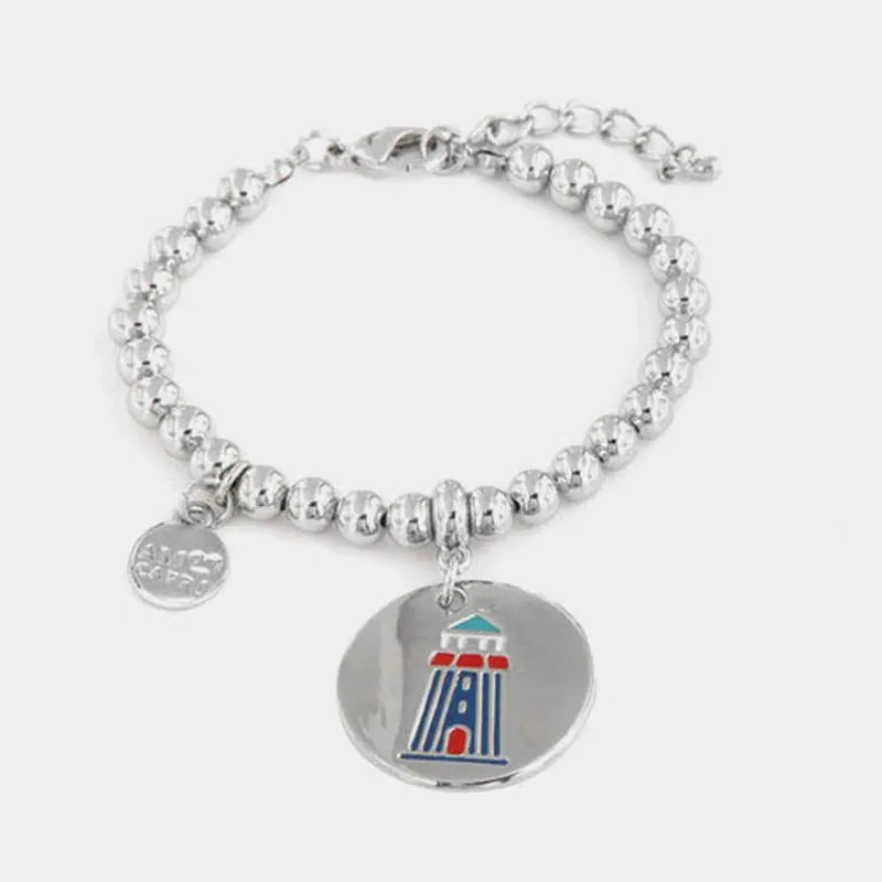 Bracciale in Metallo maglia a sfere con medaglione, simbolo faro di Capri in smalti colorati