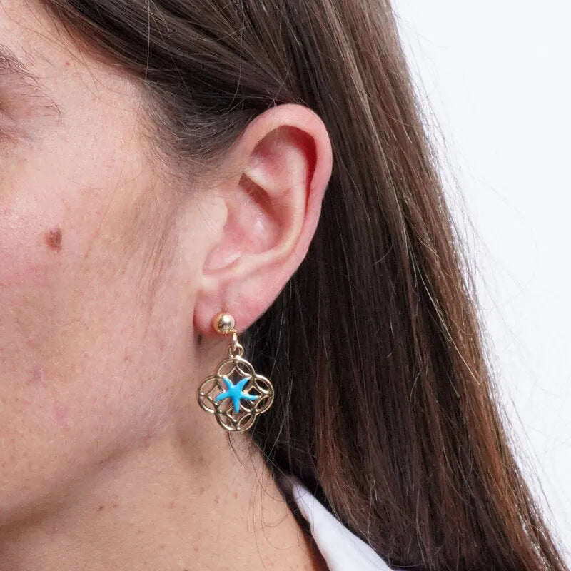 Orecchini in Metallo maioliche con stella marina azzurra