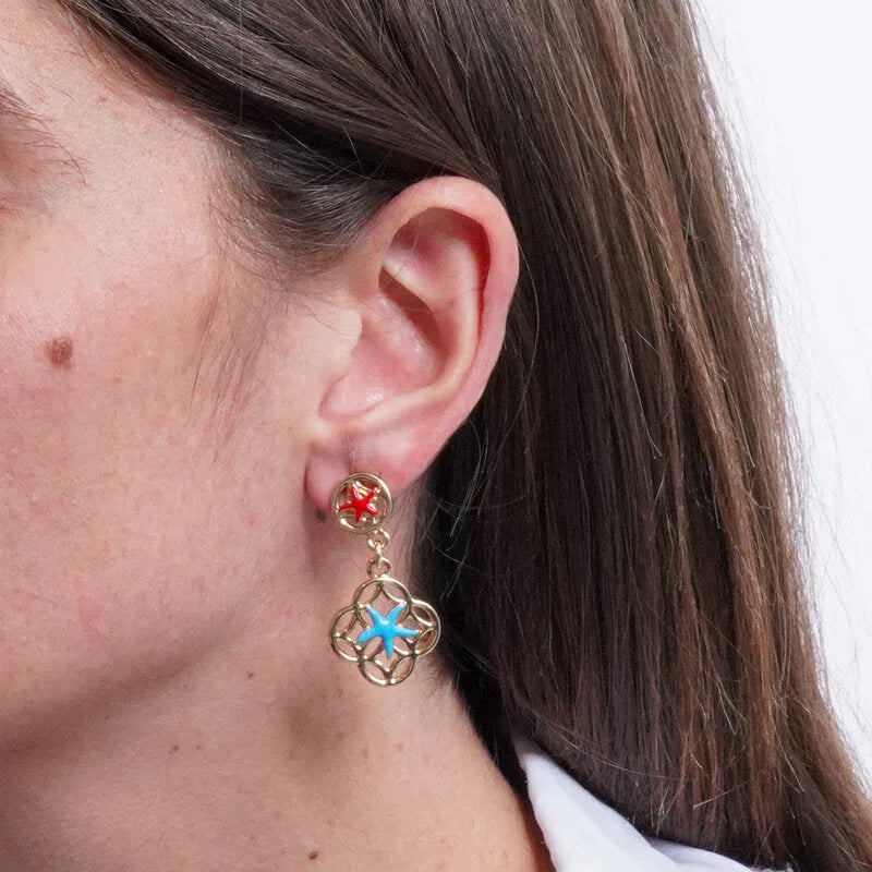 Orecchini in Metallo maioliche con stella marina azzurra