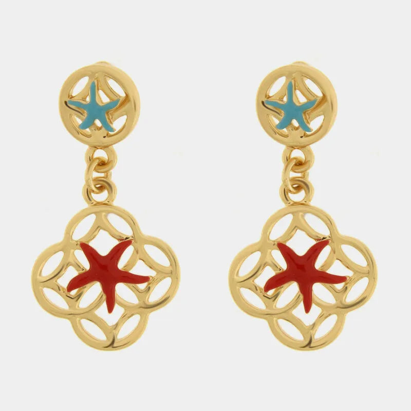 Orecchini in Metallo maioliche con stella marina azzurra e rossa
