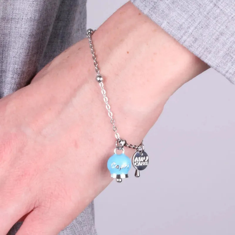 Bracciale in Acciaio con campanella pendente azzurra con scritta Capri